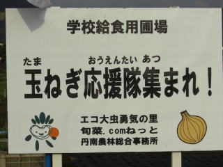 ↑ 『玉ねぎ応援隊集まれ!』の看板も設置 |