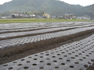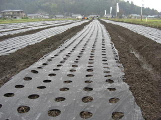 | ↑ マルチの穴が5列の1、2、3、・・遠い!! |